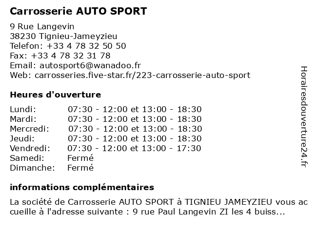 | Lundi | 07:30-12:00 et 13:00-18:30 |