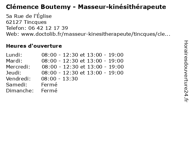 | Lundi | 08:00-12:30 et 13:00-19:00 |
