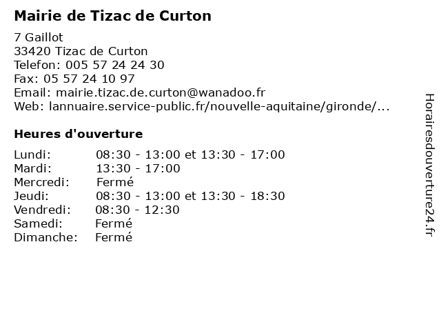 Termes de recherche pour Mairie de Tizac de Curton:de, mairie, central, commune, tizac, curton, gouvernement, nra |