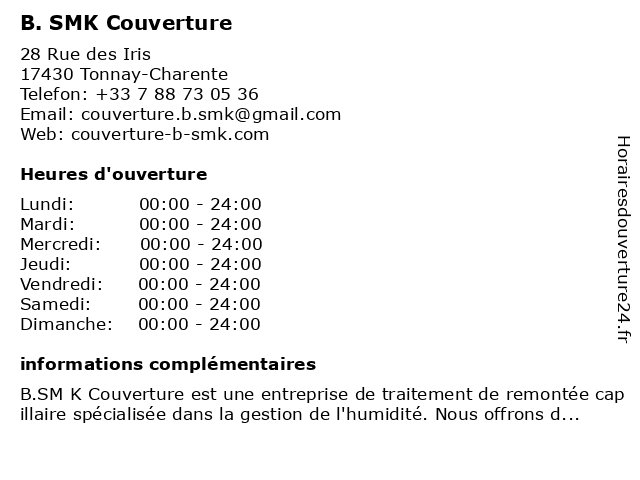 4 SJ Couverture Zinguerie (Distance: 2,57 km) 29 Rue de la Vacherie, 17300 Rochefort couverture, sj, zinguerie 5 CTCZ Couverture Zinguerie (Distance: 4,18 km) 32 rue des maraîchers, 17430 Tonnay-Charente couverture, ctcz, zinguerie 6 B & C Couverture Zinguerie (Distance: 4,28 km) 40 Avenue d'Aunis, 17300 Rochefort couverture, zinguerie |