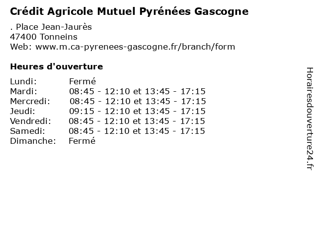 1 Crédit Agricole Mutuel Pyrénées Gascogne (Distance: 6,41 km) 4 Rue Jean-Jaurès, 47320 Clairac agricole, assurances, bancaire, banque, crédit, gascogne, mutuel, pyrénées, services 2 Crédit Agricole Mutuel Pyrénées Gascogne (Distance: 7,71 km) . Rue du Bois, 47430 Le Mas-d'Agenais agricole, assurances, bancaire, banque, crédit, gascogne, mutuel, pyrénées, services 3 Crédit Agricole Mutuel Pyrénées Gascogne (Distance: 11,26 km) . Boulevard du Midi, 47160 Damazan agricole, assurances, bancaire, banque, crédit, gascogne, mutuel, pyrénées, services 4 Crédit Agricole Mutuel Pyrénées Gascogne (Distance: 14,93 km) . Rue du 11 Novembre, 47260 Castelmoron agricole, assurances, bancaire, banque, crédit, gascogne, mutuel, pyrénées, services 5 Crédit Agricole Mutuel Pyrénées Gascogne (Distance: 16,23 km) . Le Clavier, 47250 Bouglon agricole, assurances, bancaire, banque, crédit, gascogne, mutuel, pyrénées, services 6 Crédit Agricole Mutuel Pyrénées Gascogne (Distance: 16,48 km) 1 Avenue du 11 Novembre 1918, 47130 Port-Sainte-Marie agricole, assurances, bancaire, banque, crédit, gascogne, mutuel, pyrénées, services |