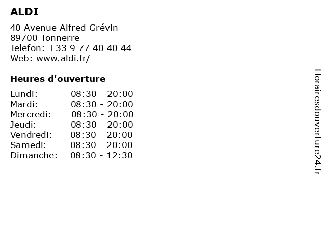 1 Aldi (Distance: 0,08 km) 40 rue Alfred Grévin, 89700 Tonnerre aldi, alimentaire, alimentation, supermarché, supérette, épicerie 2 Aldi (Distance: 30,03 km) 33 Avenue Jean Mermoz, 89000 Auxerre aldi, alimentaire, alimentation, supermarché, supérette, épicerie 3 Aldi (Distance: 31,37 km) - Avenue de Paris, 89470 Monéteau aldi, alimentaire, alimentation, supermarché, supérette, épicerie 4 Aldi (Distance: 35,69 km) 6-10 Avenue Jean Jaurès, 89400 Migennes aldi, alimentaire, alimentation, courses, distributeur, distribution, grande, hypermarché, supermarché, supérette, épicerie 5 Aldi (Distance: 40,23 km) - Route de Dijon, 21500 Montbard aldi, alimentaire, alimentation, supermarché, supérette, épicerie 6 Aldi (Distance: 41,27 km) - Rue du Général Leclerc, 89200 Avallon aldi, alimentaire, alimentation, supermarché, supérette, épicerie |