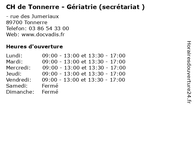 | Mardi | 09:00-13:00 et 13:30-17:00 |