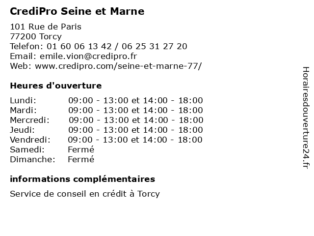 | Lundi | 09:00-13:00 et 14:00-18:00 |