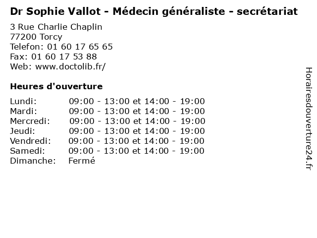 | Mardi | 09:00-13:00 et 14:00-19:00 |