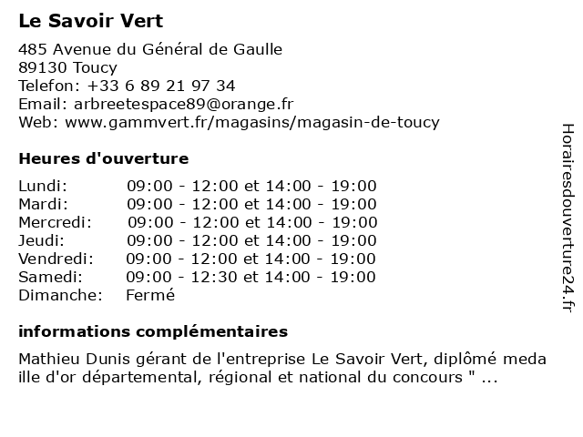 | Samedi | 09:00-12:30 et 14:00-19:00 |