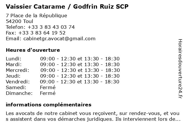 | Lundi | 09:00-12:30 et 13:30-18:30 |
