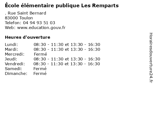 | Lundi | 08:30-11:30 et 13:30-16:30 |