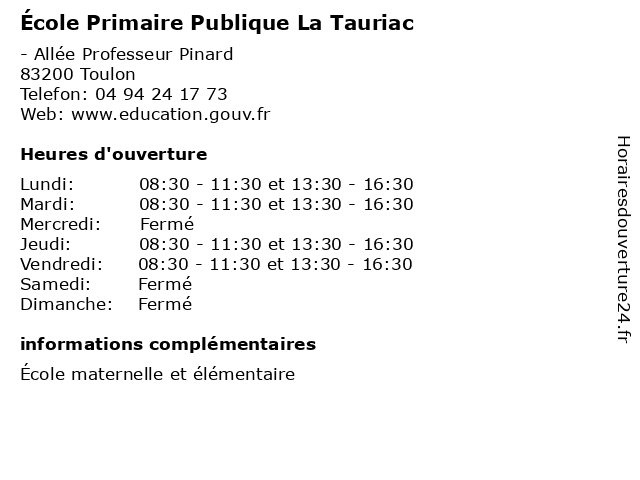 | Mardi | 08:30-11:30 et 13:30-16:30 |