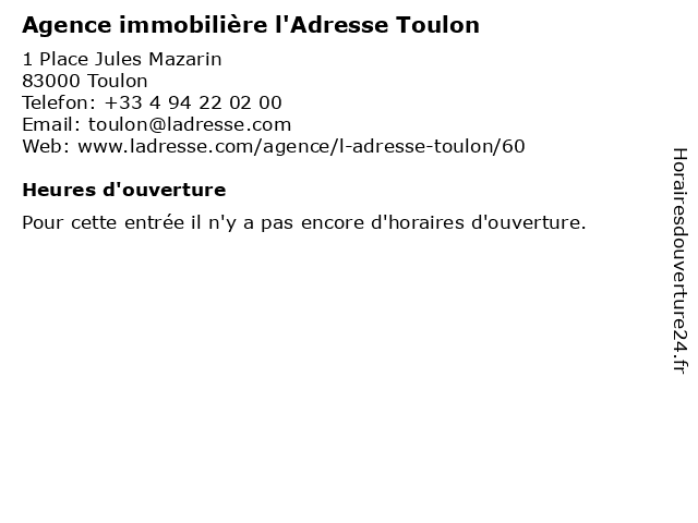 | Appeler Agence immobilière l'Adresse Toulon | |