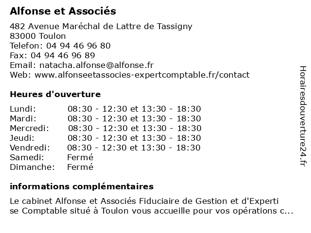 | Lundi | 08:30-12:30 et 13:30-18:30 |