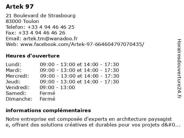 | Lundi | 09:00-13:00 et 14:00-17:30 |