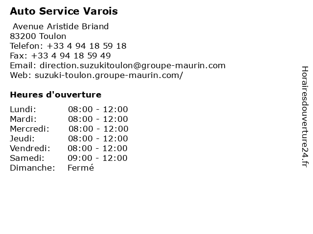 1 Suzuki - AUTO SERVICE VAROIS - AS 83 - Espace Commercial (Distance: 0,47 km) - Avenue Aristide Briand, 83200 Toulon 83, as, auto, commercial, entretien, espace, révisions, service, services d'automobiles, suzuki, varois, vidanges 2 Suzuki - AUTO SERVICE VAROIS - AS 83 - Espace Occasions (Distance: 0,47 km) - Avenue Aristide Briand, 83200 Toulon 83, as, auto, entretien, espace, occasions, révisions, service, services d'automobiles, suzuki, varois, vidanges 3 Suzuki - AUTO SERVICE VAROIS - AS 83 - Service Après-Vente (Distance: 0,47 km) - Avenue Aristide Briand, 83200 Toulon 83, après, as, auto, entretien, révisions, service, services d'automobiles, suzuki, varois, vente, vidanges 4 Suzuki - AUTO SERVICE VAROIS - AS 83 - Magasin (Distance: 0,47 km) - Avenue Aristide Briand, 83200 Toulon 83, as, auto, entretien, magasin, révisions, service, services d'automobiles, suzuki, varois, vidanges 5 Centre de Conduite Varois (Distance: 6,80 km) 112 Avenue Paster, 83160 Valette du Var autoecole, boite, centre, code, conduite, de, manuelle, rousseau, route, var, varois 6 Suzuki - AUTO SERVICE VAROIS - AS 83 - Magasin (Distance: 8,12 km) - Avenue de l'Université, 83160 La Valette-du-Var 83, as, auto, entretien, magasin, révisions, service, services d'automobiles, suzuki, varois, vidanges |