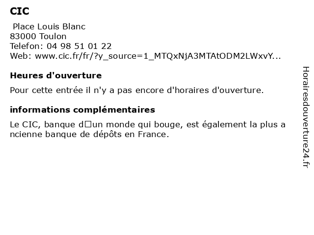 1 CIC (Distance: 0,57 km) 48 Boulevard De Strasbourg, 83041 Toulon cic, compagnie de téléphone, organisme d'assurance 2 CIC (Distance: 0,94 km) 113 Boulevard De Bazeilles, 83000 Toulon cic, compagnie de téléphone, organisme d'assurance 3 CIC (Distance: 1,96 km) 420 Avenue Du 15e Corps, 83200 Toulon cic, compagnie de téléphone, organisme d'assurance 4 CIC (Distance: 4,33 km) 12 Place Jean Jaures, 83160 La Valette Du Var cic, compagnie de téléphone, organisme d'assurance 5 CIC (Distance: 6,49 km) 762 Avenue Jean Monnet, 83190 Ollioules cic, compagnie de téléphone, organisme d'assurance 6 CIC (Distance: 8,11 km) Place Des Poilus, 83140 Six Fours Les Plages cic, compagnie de téléphone, organisme d'assurance |