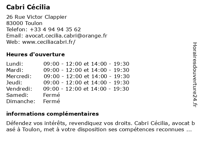 | Lundi | 09:00-12:00 et 14:00-19:30 |