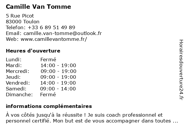 1 Place Camille (Distance: 0,46 km) - rue d'Alger, 83000 Toulon accessoires, boutique, camille, habillements, mode, place, vêtements 2 Dr Delphine Nguyen Van Nuoi - Ophtalmologue (Distance: 0,49 km) 39 Avenue Georges Clemenceau, 83000 Toulon delphine, dr, nguyen, nuoi, ophtalmologie, ophtalmologistes, ophtalmologue, van, vision 3 Dr Hans Van Der Pijl - Néphrologue (Distance: 0,68 km) 2 Boulevard Sainte-Anne, 83000 Toulon der, dr, hans, insuffisance, nephrologie, nephrologue, néphrologue, pijl, rénale, van 4 Tran Van Tung Franck (Distance: 0,68 km) 31 Avenue De Siblas, 83000 Toulon franck, restaurants, tran, tung, van 5 Dr Werner Van Kerckhoven - ORL (Distance: 0,78 km) 89 Avenue Colonel Fabien, 83000 Toulon dr, kerckhoven, laryngologie, orl, oto, rhino, van, werner 6 Van Ly Huong (Distance: 1,80 km) 42 Rue Lamalgue, 83000 Toulon asiatiques, huong, ly, nems, plats, riz, rouleaux, traiteur, van, épicerie |