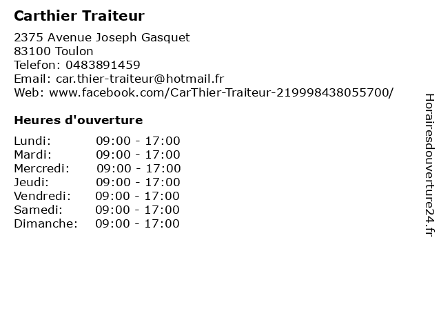 | Lundi | 09:00-17:00 |