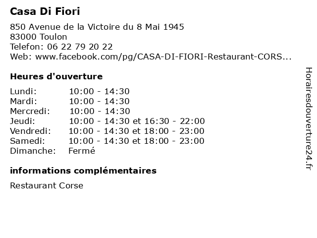 Termes de recherche pour Casa Di Fiori:restaurant, menu, di, casa, fiori, nostra |