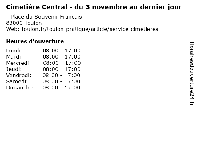 | Lundi | 08:00-17:00 |