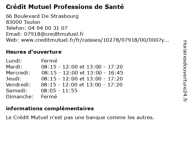 1 Credit Mutuel (Distance: 0,00 km) 66 Boulevard de Strasbourg, 83000 Toulon agence, assurance, bancaire, banque, credit, mutuel 2 Credit Mutuel (Distance: 0,40 km) 7 Boulevard de Strasbourg, 83000 Toulon agence, assurance, bancaire, banque, credit, mutuel 3 Crédit Mutuel (Distance: 0,41 km) 7 Boulevard De Strasbourg, 83000 Toulon compagnie de téléphone, crédit, mutuel, organisme d'assurance 4 Crédit Mutuel (Distance: 1,37 km) 69 Boulevard De Bazeilles, 83000 Toulon compagnie de téléphone, crédit, mutuel, organisme d'assurance 5 Credit Mutuel (Distance: 1,37 km) 69 Boulevard Bazeilles, 83000 Toulon agence, assurance, bancaire, banque, credit, mutuel 6 Crédit Agricole Mutuel Pyrénées Gascogne (Distance: 4,75 km) . Grand Var, 83160 La Valette-du Var agricole, assurances, bancaire, banque, crédit, gascogne, mutuel, pyrénées, services |
