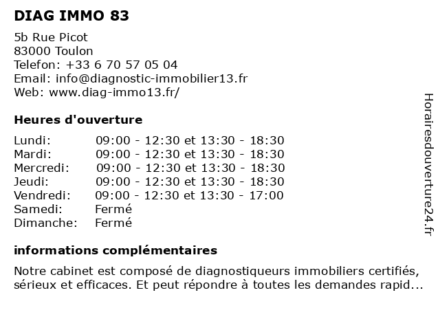 | Lundi | 09:00-12:30 et 13:30-18:30 |