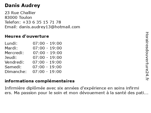 | Lundi | 07:00-19:00 |