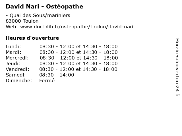 | Lundi | 08:30-12:00 et 14:30-18:00 |