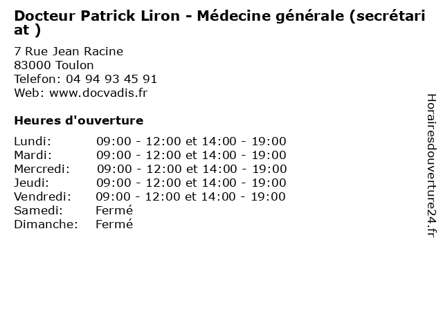 | Lundi | 09:00-12:00 et 14:00-19:00 |