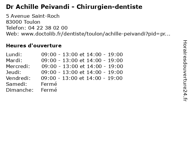 | Lundi | 09:00-13:00 et 14:00-19:00 |