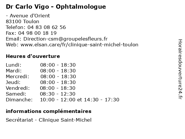 | Dimanche | 10:00-12:00 et 14:30-17:30 |