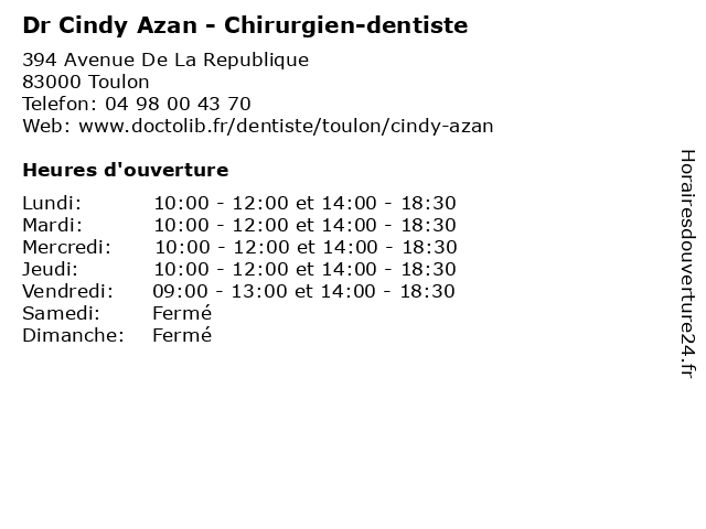 | Lundi | 10:00-12:00 et 14:00-18:30 |