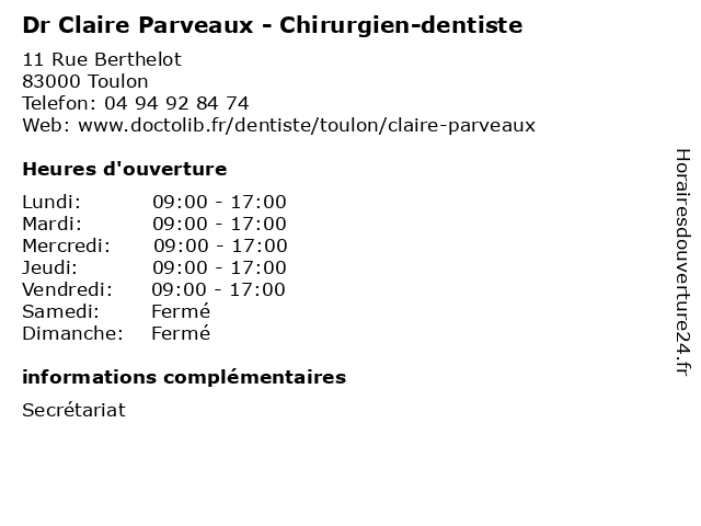 | Lundi | 09:00-17:00 |