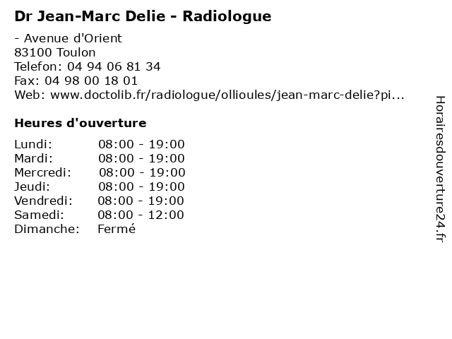 1 Dr Jean-Marc Delie - Radiologue (Distance: 6,18 km) 332 Avenue Frédéric Mistral, 83190 Ollioules consultation, delie, docteur, dr, jean, marc, med, médecin, médecine, radiologue, traitement 2 Dr Jean-Marc Delie - Radiologue (Distance: 7,74 km) 1361 Avenue des Combattants d'Indochine, 83500 La Seyne-sur-Mer cap, centre, clinique, d'imagerie, d'or, delie, diagnostique, dr, du, et, imagerie, irm, jean, marc, médicale, radiologie, radiologue, scanner, thérapeutique 3 Medecin Marc Danan (Chirurgien général) (Distance: 0,19 km) . Place du 4-Septembre, 83000 Toulon chirurgien, danan, docteur, général, marc, medecin, sante, services 4 Green Acres - Sagazan Jean Marc (Distance: 1,92 km) 2400 Avenue Joseph Gasquet, 83100 Toulon acres, agency, agent, apartment, green, home, jean, marc, real estate, sagazan 5 Marc Orian (Distance: 2,20 km) . Toulon Ouest, 83190 Ollioules cafe, chaussures, enfants, homme, lingerie, marc, mode femme, orian, restaurant 6 Marc Orian (Distance: 6,38 km) 55 Chemin De La Bouyère, 83190 Ollioules achat de bijoux, bijoutier, création de bijoux, expertise en bijouterie, gravures sur bijoux, magasin de montres, marc, négociant en or, orian, réparation de bijoux, réparation de montres |