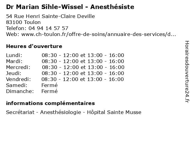 | Vendredi | 08:30-12:00 et 13:00-16:00 |