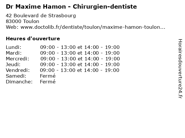 | Lundi | 09:00-13:00 et 14:00-19:00 |