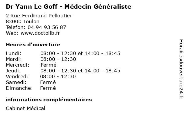 | Lundi | 08:00-12:30 et 14:00-18:45 |