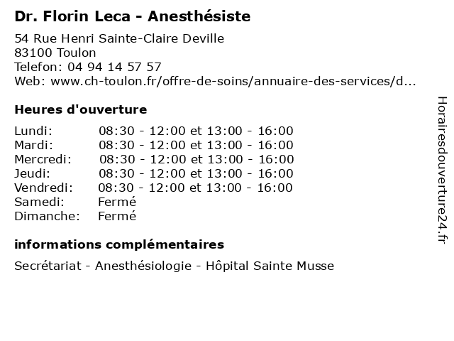 | Lundi | 08:30-12:00 et 13:00-16:00 |