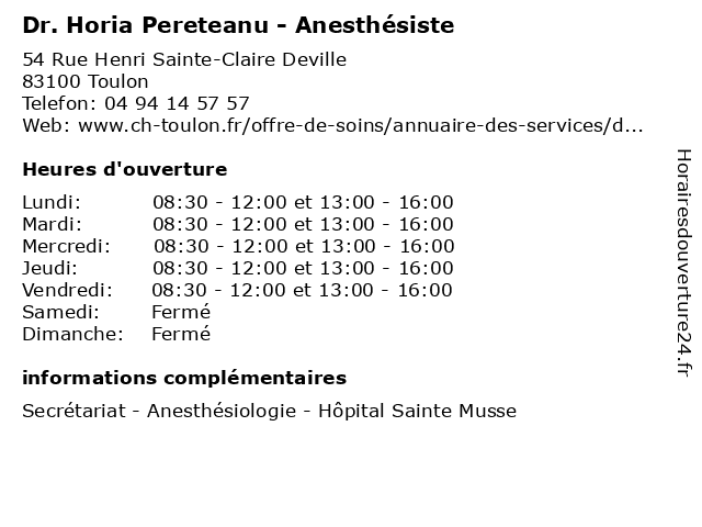 | Jeudi | 08:30-12:00 et 13:00-16:00 |