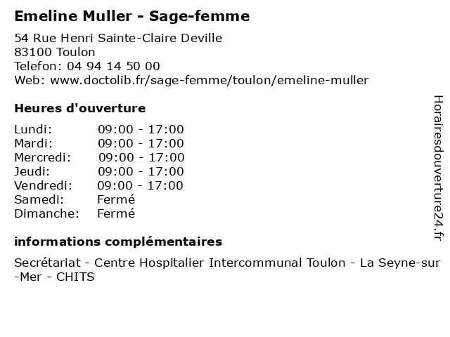 1 Emeline Dans Sa p Tite Cuisine (Distance: 2,86 km) Le Mourillon, 83000 Toulon cuisine, emeline, restaurants, tite, vallois 2 Dr Brigitte Muller - Pneumologue (Distance: 3,85 km) 97 Avenue Jean Moulin, 83000 Toulon allergie, allergologue, brigitte, dr, muller, pneumologue, soins 3 Dr Alexandra Muller - Chirurgien-dentiste (Distance: 4,61 km) 560 Avenue du Maréchal Foch, 83000 Toulon alexandra, chirurgien, dent, dentiste, docteur, dr, muller, soins 4 Muller & Bechou Immobilier (Distance: 8,63 km) 110 Avenue Général de Gaulle, 83500 La Seyne-sur-Mer agence, bechou, gestion, immobilier, location, maison, muller, transaction, vente 5 Dr Pierre Muller - Echographiste - secrétariat (Distance: 12,43 km) 7B avenue Gambetta, 83400 Hyeres consultation, docteur, dr, echographiste, med, muller, médecin, médecine, pierre, secrétariat, traitement 6 Victoria Voarino - Sage-femme (Distance: 0,00 km) 54 Rue Henri Sainte-Claire Deville, 83100 Toulon du, femme, maternité, périnée, rééducation, sage, uro-gynécologique, victoria, voarino |