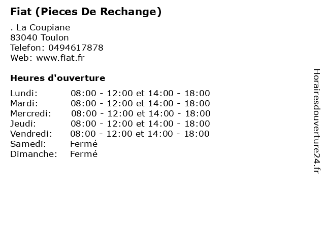 | Lundi | 08:00-12:00 et 14:00-18:00 |