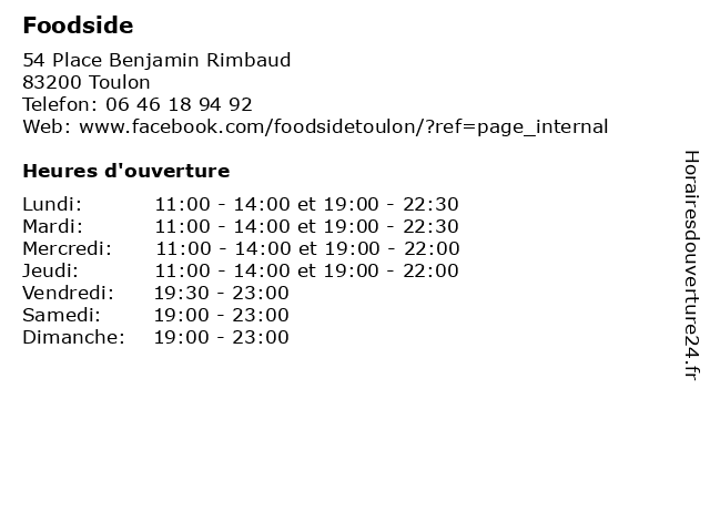 | Lundi | 11:00-14:00 et 19:00-22:30 |