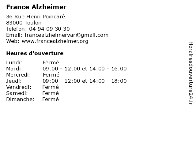 | Jeudi | 09:00-12:00 et 14:00-18:00 |