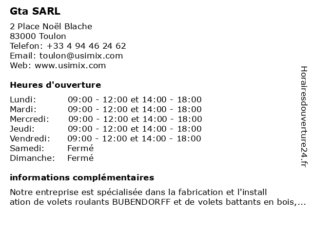 | Lundi | 09:00-12:00 et 14:00-18:00 |