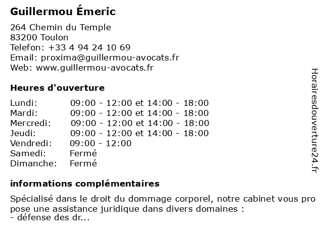 | Lundi | 09:00-12:00 et 14:00-18:00 |