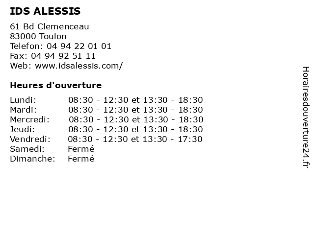 | Lundi | 08:30-12:30 et 13:30-18:30 |