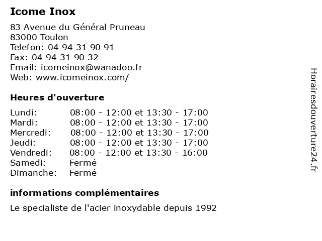 | Samedi | Fermé |