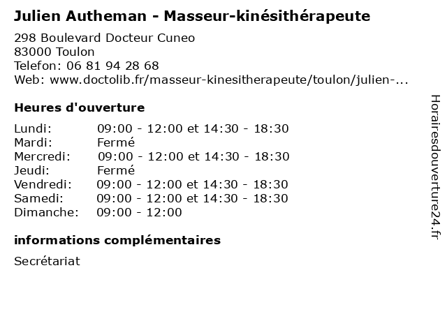 | Lundi | 09:00-12:00 et 14:30-18:30 |