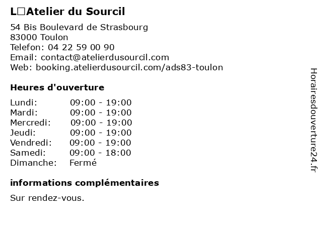1 L’Atelier du Sourcil (Distance: 15,95 km) 17 Avenue Général de Gaulle, 83400 Hyeres beauté, du, esthétique, institut, l’atelier, salon, soins, sourcil, épilation 2 L’Atelier Du Bagel (Distance: 0,35 km) 20 Rue Des Boucheries, 83000 Toulon atelier, bagel, cuisine, du, l’atelier, menus, repas, restaurants 3 L’Atelier Original (Distance: 0,42 km) 6 Place d'Armes, 83000 Toulon atelier, boulangerie, cafe, l’atelier, original 4 L’Atelier Aj Coiffure (Distance: 0,47 km) 46 Rue d’Alger, 83000 Toulon aj, beauté, cheveux, coiffure, coupe, l’atelier, salon, soins 5 L’Atelier de Val (Distance: 17,32 km) 11 allée des Grès Roses, 83400 Hyères 'atelier, coiffeur, coiffure, coloration, coupe, de, l’atelier, shampooing, val 6 L’Atelier Gourmand (Distance: 31,96 km) 115 Avenue des Carrières, 13830 Roquefort-la-Bédoule bar, bistro, bistrot, brasserie, café, gourmand, l’atelier, restaurant, restauration |