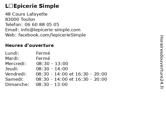 | Lundi | Fermé |