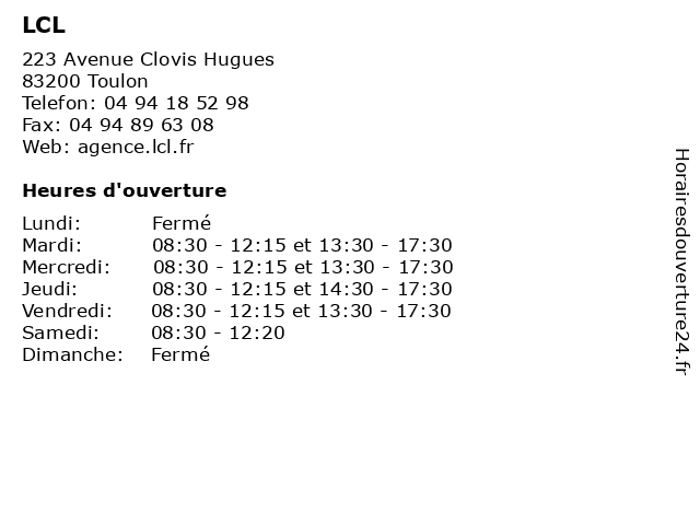 1 LCL (Distance: 1,33 km) 304 Avenue du 15eme Corps, 83200 Toulon agence, assurance, bancaire, banque, lcl 3 LCL (Distance: 4,87 km) 106 Rue De La Republique, 83140 Six Fours Les Plages banque, crédit, lcl, service 4 Lcl (Distance: 5,35 km) 645 637, 83500 La Seyne Sur Mer banques, commerciales, credit, lcl, lyonnais, nationales 5 LCL (Distance: 6,12 km) - Avenue du Docteur Tremolières, 83160 La Valette du Var agence, assurance, bancaire, banque, lcl 6 LCL (Distance: 6,54 km) 645 Avenue Charles de Gaulle, 83500 La-Seyne-sur-Mer agence, assurance, bancaire, banque, lcl |